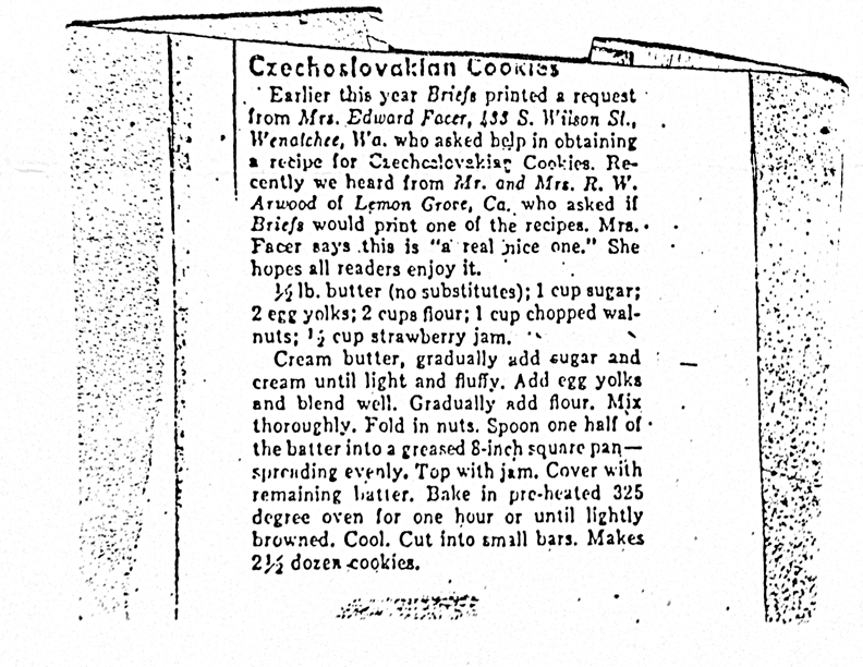 I’m not sure where this recipe is originally from, it has been floating in my family for decades. Here is a scanned copy of the original cutout: