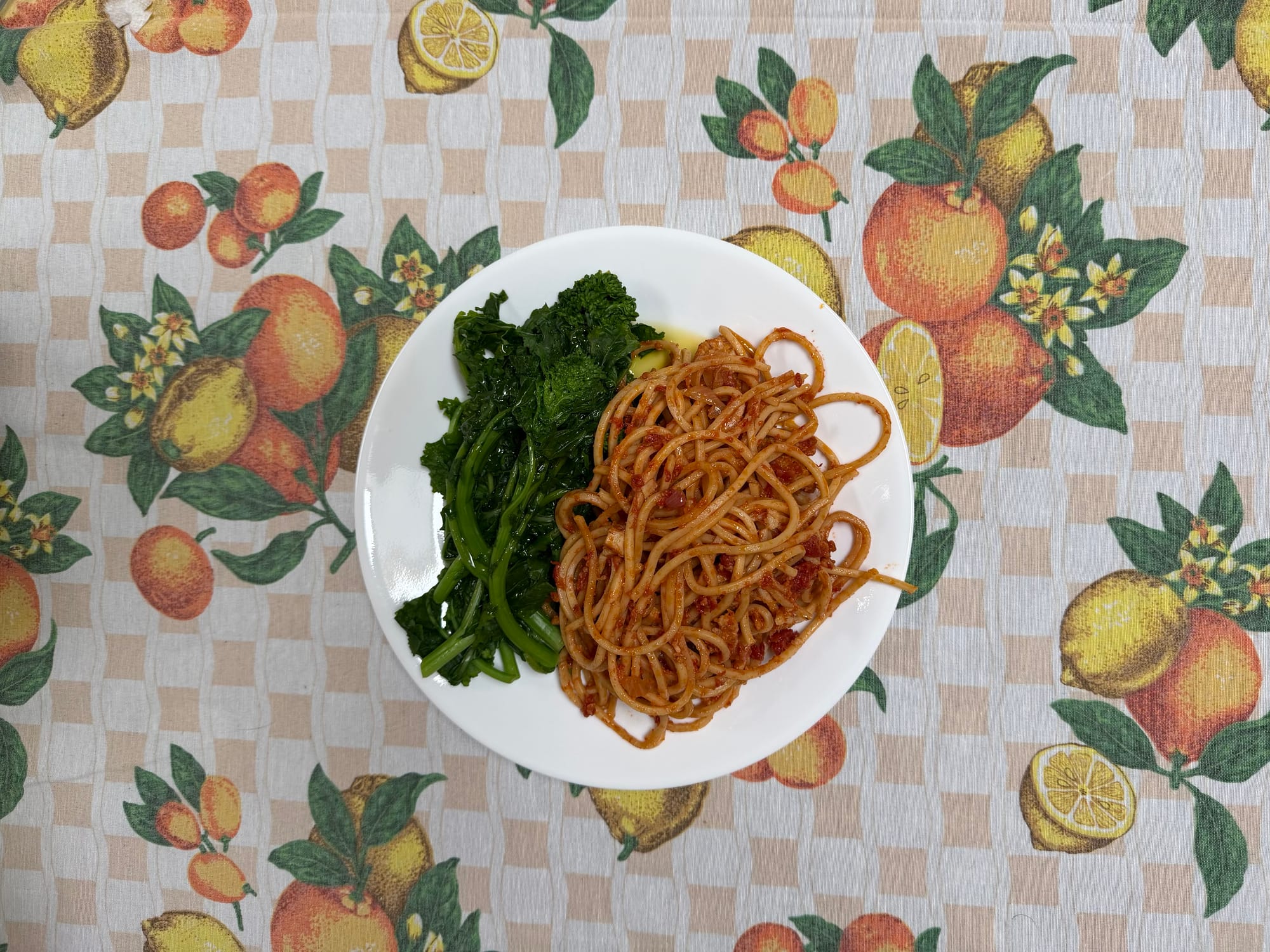 Broccoli rabe and leftover tomato sauce pasta
