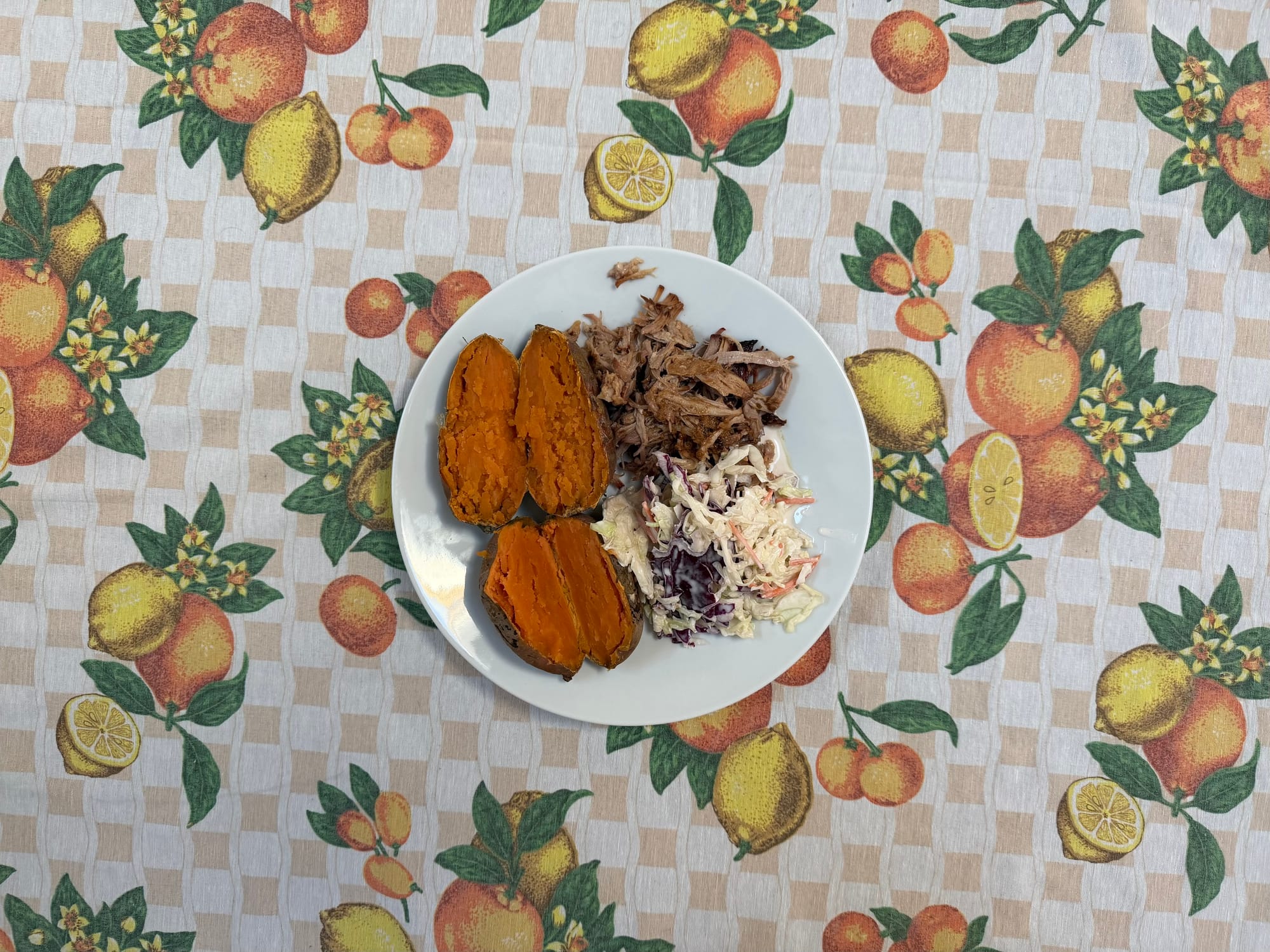 Pulled pork, coleslaw, sweet potatoes